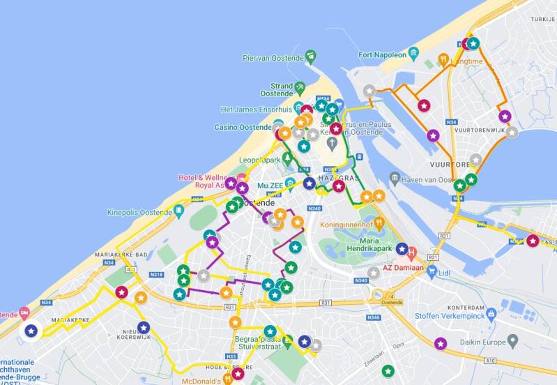 Je ziet niet alleen tientallen reusachtige kunstwerken in alle vormen en maten, maar je leert tijdens de route ook de verschillende wijken en facetten van Oostende kennen.